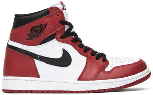 The Air Jordan 1 Retro High OG 'Chicago' 2015 colorway was designed to avoid Jordan's $5,000-per game fines from the NBA after the original black and red colorway was banned. The 'Chicago' was first retroed in 1994 and stayed true to the 1985 design. Further retros were released in 2013 with small changes to the design, and again in 2015 with the original branding details: the Nike Air logo on the tongue and the original clean heel without the Jumpman logo.