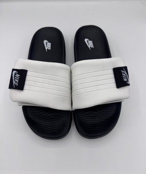 Nikee premium Adjustable Slides – white & Black (8mm foam) with recovery sole
