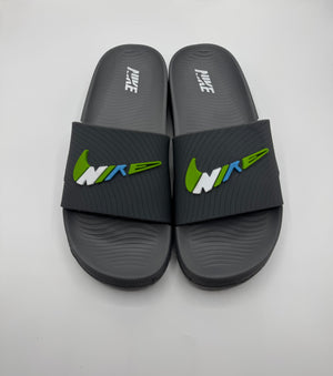 Add a pop of neon fun to your casual look with nike Grey Slides featuring a vibrant neon side detail. Designed for easy slip-on comfort and a playful touch, these slides keep your feet cozy and your style bright wherever you go!